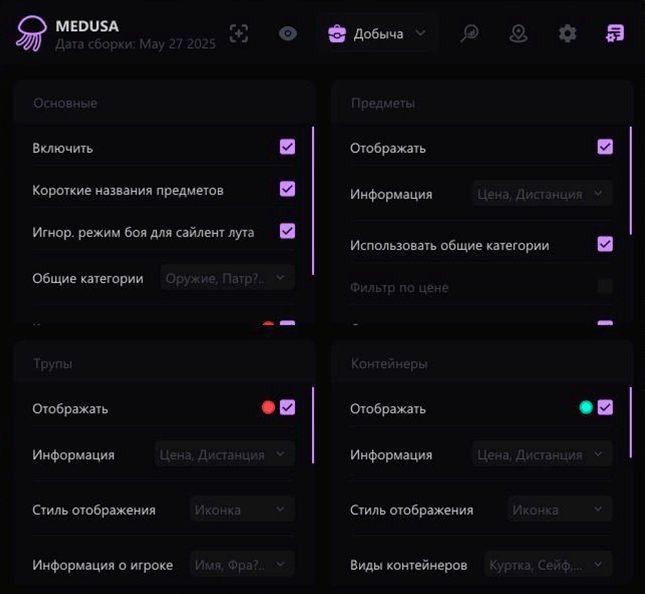 Medusa для Escape From Tarkov — это инструмент для тех, кто хочет повысить эффективность игры и получить максимум контроля над происходящим.